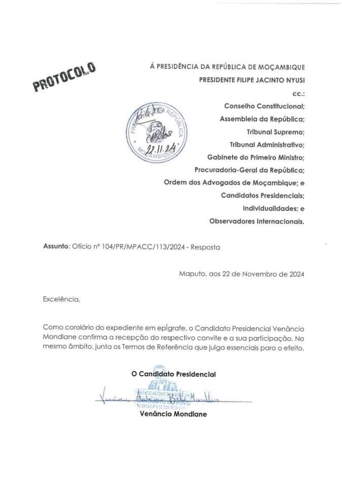 Agora, aguarda-se a resposta do Presidente Nyusi para avançar com este diálogo.
